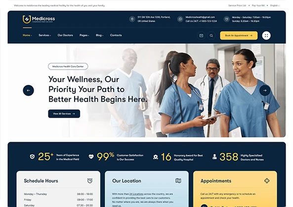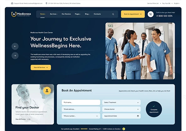 Medicross is using the best coding practices and top quality code to ensure fast loading times of the website.